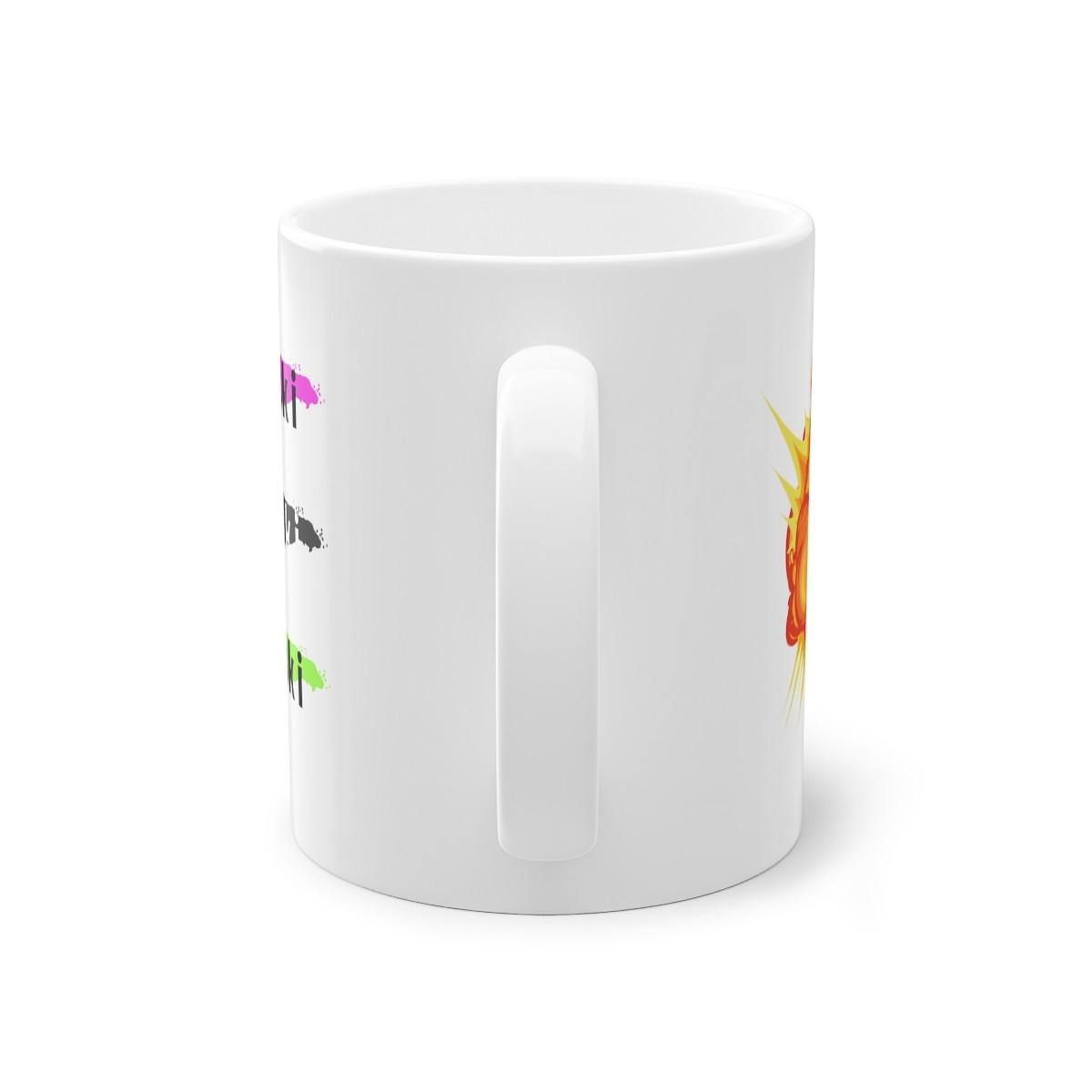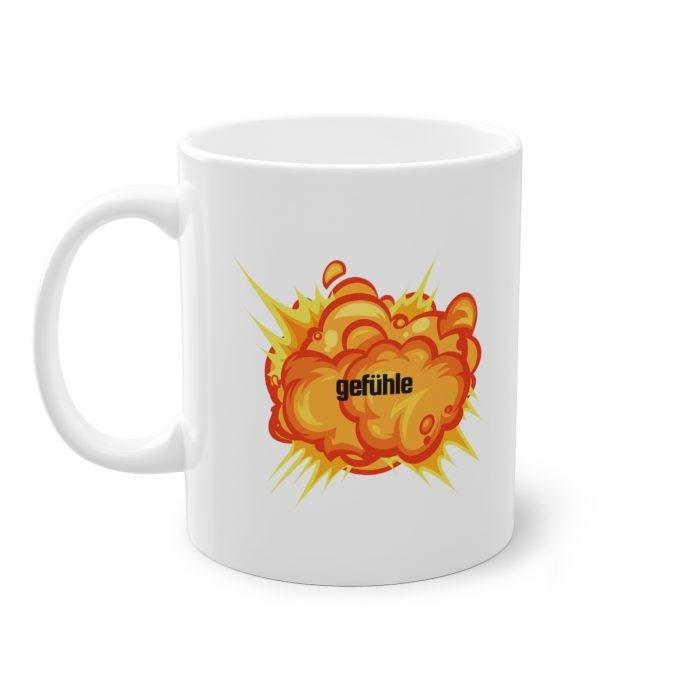 Diese Tasse lässt deine Gefühle explodieren – bei jedem Schluck! Der Print nimmt Bezug auf eine Zeile aus matskis Song Leben oder Anzug, wo der Protagonist einen Ausbrauch aus einem grauen Alltag hinein ins bunte Leben erlebt. Die Tasse setzt ein Statement und betont deinen Mut, Gefühle zuzulassen und sie zu zeigen.